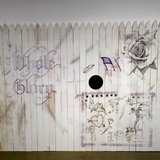 These prize tattoos were actually part of an exhibition called Whole Glory at New York City's Milk Gallery. A picket fence was constructed between the artist and his clients, who placed their arms through a small hole in the fence when it was time for their appointment. There was no consultation, discussion, or even eye contact during the whole process . . . anyone who got a bespoke tattoo had no say regarding the final result.