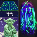 Just when we thought we had seen it all with rainbow hair - galaxy, sand art, and oil slick - one stylist blew our minds with glow-in-the-dark strands. Las Vegas-based hair and makeup artist Mishele DiMaria designed these looks as part of a #starwarspoplocks contest, in which people were challenged to create beauty looks inspired by Star Wars. Whether you're a fan of the sci-fi franchise or a club kid, these glowing multicolored looks will mesmerize you. Plus, they appear equally jaw dropping in daylight as they do under black lights. Just see so for yourself!