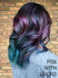 This is peacock hair! Similar to the oil slick trend, it incorporates shades of blue, green, purple, and even golds and pinks (like you might find on the bird's showy tail feathers). Unlike oil slick, however, the overall effect is more dramatic. The dye is more concentrated, giving the wearer a bold, ostentatious look. We're all for it - and we think our feathered friends would be, too.