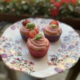 - Optionally, garnish cupcakes with a strawberry slice and/or basil leaf.