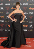 Saturday's Goya Awards in Madid brought more Penelope in Versace awesomeness. She wore another custom gown, this one strapless in black silk with a Swarovski cyrstal-embellished neckline. Penelope finished the look with Versace shoes and clutch. One person who seemed to adore the elegant gown was Penelope's husband Javier Bardem, who smiled his way down the red carpet by her side as the duo headed into the ceremony.