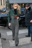 Gigi Hadid made it to Paris for the last leg of Fashion Month, and if you thought a marathon of running around to shows and dropping not one but two designer collaborations would slow down her street style game, you were wrong. Gigi showed off her killer model-off-duty flair as she stepped out in a multicolor-striped Cienne sweater ($425); sleek, gray wide-leg Nina Ricci trousers; iRi NYC shoes, and bold red Gentle Monster sunglasses.