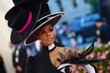Monday night's Met Gala was chock-full of stunning looks. But perhaps one of the most striking ensembles was brought to us by Janelle Monáe. The 33-year-old singer attended the NYC event sporting a colorblock, structured gown featuring a deconstructed face with a rather gorgeous detail: a blinking eye with feather lashes. The UglyDolls star further embraced the theme, "Camp: Notes on Fashion," with a stack of four top hats. She then struck a few poses to accentuate the playfully voluminous dress. Janelle always manages to serve gorgeous looks on the red carpet, but this might be one of the most dazzling outfits yet. Eye see you, Janelle! (*wink, wink*)