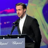 Ryan Gosling took the stage tonight at the Palm Springs International Film Festival's annual gala to accept the Vanguard Award for La La Land, and he couldn't let the moment pass by without honoring the late Debbie Reynolds. Reynolds, a darling of the golden age of cinema who passed away just a day after her daughter Carrie Fisher's death last month, was a star of now-classic films and musicals. One of her most memorable roles? As Kathy Selden in the iconic Singin' in the Rain; exactly the kind of movie to which La La Land pays homage.