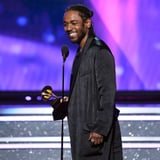 Kendrick Lamar may have had the best night at the Grammys, hands down. Not only did he open the show with a powerful performance featuring U2 and Dave Chappelle, but he also took home a handful of awards, including best rap album for Damn. During his speech, Kendrick took a moment to talk to the crowd about the importance of the award and what it meant to him. "This is a special award because of rap music," he said. "Most importantly, it showed me the true definition of what an artist was. From the jump I thought it was about the accolades, the cars, and the clothes, but it's really about expressing yourself and putting that paint on the canvas for the world to evolve." He also gave JAY-Z, Nas, and Diddy special shout-outs before walking off the stage and shouting, "JAY for president." Well said, Kendrick.