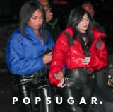 The ladies wore matching outfits consisting of high-waisted leather pants (Kylie's by I.AM.GIA), sneaker boots, fitted black tops, and puffy coats - Jordyn's in blue and Kylie's in red. What say you, is twinning becoming a trend? More importantly, would you buy into it? If the answer is yes, we rounded up inspired outerwear for you and your pal to shop. But read ahead for some more pics first, and don't forget to let us know your final answer.