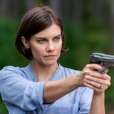 Maggie ends up coming face to face with the stranger (and her bodyguards, Hilda and Midge), who has short white-blonde hair, wears glasses, and is wearing a remarkably spiffy blazer for it being the middle of the zombie apocalypse and all. She introduces herself as Georgie, and for anyone who's read the comics, it seems like she, Hilda, and Midge could be members of the Commonwealth community from the New World Order storyline.