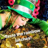Miley took a somewhat quirkier approach than her fiancé, sporting a Care Bears' Good Luck Bear onesie, a tall green and silver hat, and a gold coin chain with metallic green sandals. The "Malibu" singer uploaded videos of herself dancing around a room decorated with green balloons. In another post, Miley shared a snap of herself licking a pile of gold foiled coins. Yeah, things got pretty wild. Keep reading to see more photos of how Miley and Liam celebrated the lucky holiday.