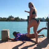 Iskra Lawrence is not done with her bikinigrams just yet. After leaving Tulum, Mexico, where we lost count of all the swimsuits she packed, the model was spotted in Miami. While her friend Natalie Gage soaked up the sun on a pier, Iskra decided to play a prank by sneaking up and tossing water onto Natalie. In the video, Iskra ran toward her while wearing an Aerie emerald bikini. The two-piece appeared to come in a woven knit design, and the top featured a scoop-style fit. The playful banter between the two curve models was cute, but we were more concerned about finding Iskra's swimsuit. Take a look ahead at her bikini, then shop similar selections.