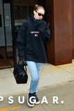 Gigi Hadid proved she's just like the rest of us with her love for monogrammed pieces. The supermodel was spotted leaving her apartment in New York while wearing a comfy street style ensemble. She styled a Vetements x Tommy Hilfiger Hoodie ($1,040) with a pair of zipper accented jeans.