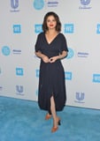 Selena Gomez stepped out at WE Day California in LA to celebrate young influencers, many of whom are probably fans. She dressed somewhat casually for the occasion, opting for a lightweight wrap dress and some layered necklaces. But Selena's design came to midi length, so she could show off her absurdly cool shoes. Selena has worn structural heels before, but these suede pumps have got her standing on what's basically a stack of three marbles. It's safe to say art deco heels are a standout trend this season, and we're not surprised Selena's on board. Of course, if Selena's look excites you like it does us, you'll want to shop footwear in similar shapes and colors. Read on to do just that.