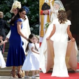 Jessica Mulroney, Meghan's stylist and BFF, slipped into a cobalt blue dress from Canadian label Di Carlo Couture. The $1,495 piece, though brighter in shade, boasted plenty of similar details to Pippa's signature look. As Jessica walked Meghan's pageboys upstairs so they could assist her with her lovely Givenchy dress, onlookers noticed her, ahem, derrière, and needless to say, Jessica's outfit, complete with Christian Louboutin pumps and a navy fascinator, became something to gush over.