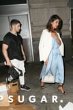 Priyanka Chopra and Nick Jonas seem to be "going steady," as you might call it. The two haven't just been spotted out to dinner but at a wedding in Atlantic City, where Priyanka stunned in a DVF wrap dress. Date night in NYC at Park Avenue Summer called for another fancy going-out look from Priyanka: sky blue silk coordinates topped off with a crisp white blazer, a scalloped Bottega Veneta bag ($5,500), lucite, cat-eye sunglasses, and purple velvet sandals.