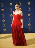 Rachel Brosnahan commands the screen in every episode of The Marvelous Mrs. Maisel, and she commanded the red carpet at the 2018 Emmys, too. Rachel wore a red Oscar de la Renta gown, red strappy heels by Schutz, and beautiful Tiffany earrings to add an extra pop of Old Hollywood glamour. The star is nominated for outstanding lead actress in a comedy series, and she walked the red carpet with her partner, Jason Ralph. Rachel's red dress was anything but an ordinary one - we loved the delicate, off-the-shoulder detail and the subtle ombré coloring. See the full look ahead, and then catch up on every other gorgeous gown at this year's Emmys.