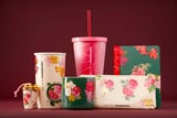 Much like the previous collaborative collection, these new products feature two different patterns: a floral one on top of either a beige or dark green background and a red one that incorporates various festive phrases in cursive lettering. The assortment is now available for purchase in Starbucks licensed stores located in both the US and Canada (yep, that includes ones found in grocery stores, airports, hotels, and retailers), so get your coffee-loving self to the nearest one ASAP to snag some of the cute items for yourself, along with one of the new Starbucks holiday cups.