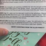 I just want to let you, dear Allens, know that your correspondence is the glorious exception to the rule. Lisa, when I came across your "brutally honest" annual newsletter on Reddit, I read it with a season's worth of joy. Not because I take pleasure in others' misfortunes (OK, OK, I do have a smidge of schadenfreude from time to time) but because it made me realize my island-of-misfit-toys family isn't so bad either.