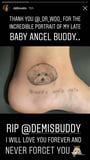 There's a sweet message behind Demi Lovato's newest tattoo. The "Sorry Not Sorry" singer revealed via her Instagram Story on Wednesday that she recently got some new ink to honor her late dog Buddy, who passed away back in 2015. "Thank you @_dr_woo for the incredible portrait of my late angel buddy," she captioned the photo. "RIP @demisbuddy. I will love you forever and never forget you." The tattoo, which is placed right above the arch on her foot, features a drawing of the white maltipoo's face next to the words, "Buddy was here."