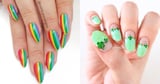 If you're worried about getting pinched by a leprechaun this St. Patrick's Day, add some shamrock green to your outfit with a festive manicure. Go for a leprechaun, four-leaf clover, rainbow, or even some sweet Lucky Charms cereal to ensure your nails are magically delicious for the day's festivities. Read on for all the nail inspo you need to shamrock this St. Patrick's Day - you'll be saying, "I'm not Irish, but kiss me anyway," in no time.