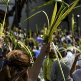 We'd usually leave on Palm Sunday after the 11 a.m. mass and procession. We would walk along the procession and then sit through the whole mass, make our little cross with the palms, and listen to the whole passion of Jesus, the final period in his life beginning with his triumphal entry into Jerusalem, touching on the last supper, his agony in the garden, the arrest by the Sanhedrin priests, his trial before Pontius Pilate, and ending with his crucifixion and his death on Good Friday.
