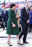 The ladies of the British royal family never fail to wow us with their outfit choices. From Meghan's perfect maternity wardrobe to Kate's signature color, and Beatrice's fearless approach to fashion, we've come to expect a certain level of poise and polish during royal engagements. That goes right down to their feet, where closed-toe high heels are the order of the day for most royal events (because when you're in the company of the queen, strappy sandals just won't do). But even a duchess or a princess can surprise us occasionally, and some of our favorite moments have been when the royals have stepped out in surprising choices: be that Kate's cool sneakers, Meghan's utility boots, or Beatrice's killer heels. Keep reading for 17 royal shoe moments from recent years that show just how varied those royal footwear collections really are. You can even shop some of the key styles for yourself.