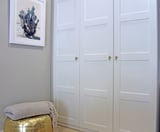 Tiny closets are a source of stress and frustration almost all small-space dwellers can relate to, but when you have to share that tiny closet with your significant other, battle lines are drawn. I should know. My husband and I tried to make due with his and hers dressers and a hanging clothes rack for a while, but the exposed rack of clothes and overflowing dressers just weren't cutting it. A wardrobe was needed. Not just any wardrobe, though. We needed his and hers wardrobes that could be customized, easily assembled, and purchased for less than a small fortune. Like any online editor would do, I took my quest to Pinterest where I discovered the answer to my problem: Ikea's Pax Wardrobe System. The interior organizing possibilities are seemingly endless, it was in stock at my local Ikea, and it was an option we could actually afford. After studying and pinning some inspiration pictures culled from other bloggers' Pax projects, my husband and I purchased one for each of us and customized them for our needs. Here's what I did with mine!